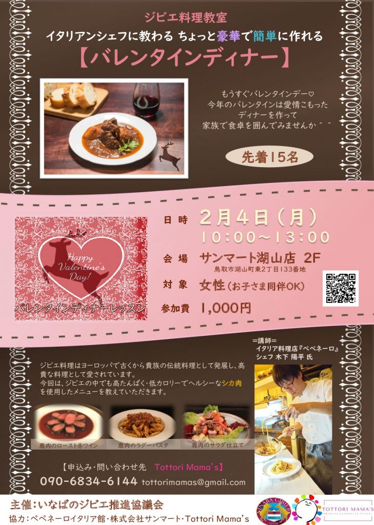 主催:いなばのジビエ推進協議会 協力:ペペネーロイタリア館・株式会社サンマート イタリアンシェフに教わる ちょっと豪華で簡単に作れる【バレンタインディナー】 もうすぐバレンタインデー♡ 今年のバレンタインは … 続きを読む 2月4日(月)開催 イタリアンシェフに教わる ちょっと豪華で簡単に作れる【バレンタインディナー】