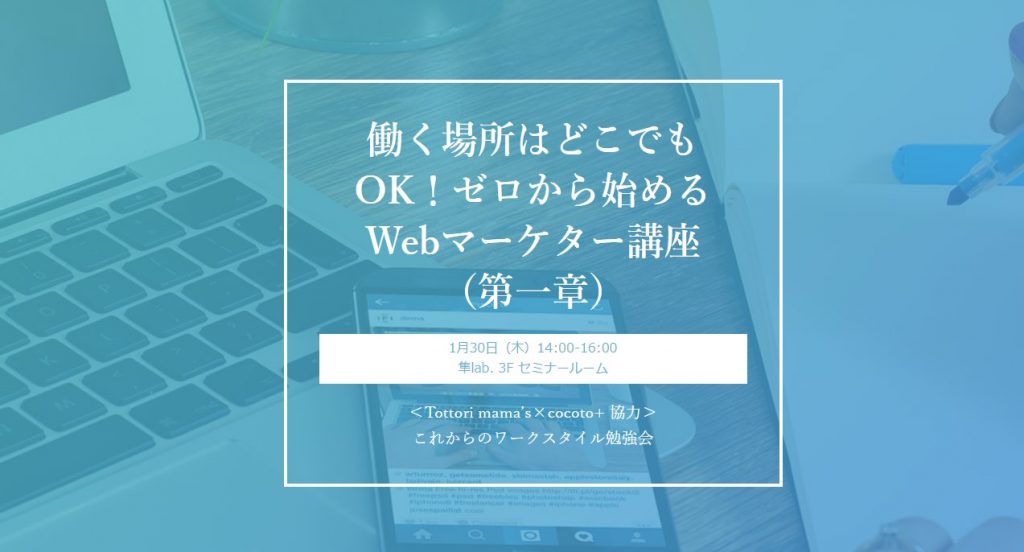 <Tottori mama’s×cocoto+ 協力> これからのワークスタイル勉強会 ~働く場所はどこでもOK! ゼロから始めるWebマーケター講座(第一章)~ ◆詳細はこちらから https://event016.d … 続きを読む これからのワークスタイル勉強会 ~働く場所はどこでもOK!ゼロから始めるWebマーケター講座(第一章)~