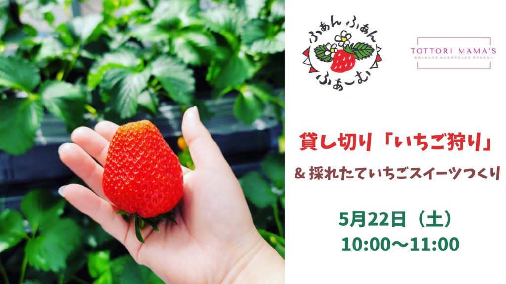 鳥取市にある≪ふぁんふぁんふぁーむ≫様とのコラボ企画 ふぁんふぁんふぁーむ「いちご狩りハウス」を貸し切り いちご狩り& 採れたていちごでスイーツつくり 今年は、いちご狩りが大人気 … 続きを読む 5月22日(土)10:00~「貸し切り≪いちご狩り≫&採れたていちごでスイーツづくりin ふぁんふぁんふぁーむ」