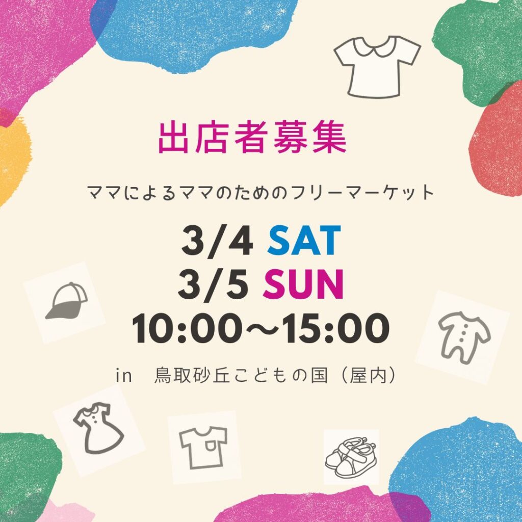※こちらのイベントページは【3月4日(土)】開催分です。 乳幼児を対象としたイベントが開催され こちらのイベントでフリマも同時開催します。 出店希望の方は、下記を必ずお読みいただいてから申し込 … 続きを読む 3月4日(土)開催 ママによるママのためのフリーマーケット①