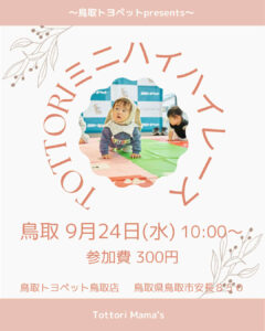 デフォルトタイトル Tottori Mama's 2025年9月24日のイベント › ハイハイレース イベントを検索してナビゲーションを表示 検索の イベント を表示 イベント の検索 当日 検索 イベント ビューナビゲーション 以下の形式で表示 リスト月日 « 前日 翌日 » 10:00 AM 【鳥取】9月24日(水)開催 TOTTORI”ミニ”ハイハイレース ~鳥取トヨペットpresents~ 9月24日 @ 10:00 AM - 10:40 AM 鳥取トヨペット 鳥取店, 鳥取県鳥取市安長850 鳥取市, 鳥取県 680-0913 + Google マップ ¥300 ※こちらのイベントは満席となりました。只今、キャンセル待ち受付中です! ハイハイを楽しもう♫ 「TOTTORIハイハイレース」開催時期と ハイハイのタイミングが合わなかった! といったお声をい[...] さらに詳しく » + イベントをエクスポート