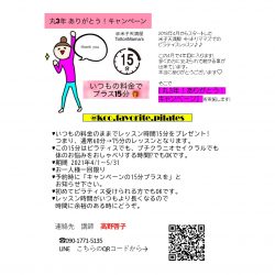 4月は『丸3年ありがとうキャンペーン』 いつもの料金でレッスンが15分延長となりますよ♪ ピラティスはインナーマッスルを意識して動き、筋・骨格系を整えていくエクササイズです。 リ[…]